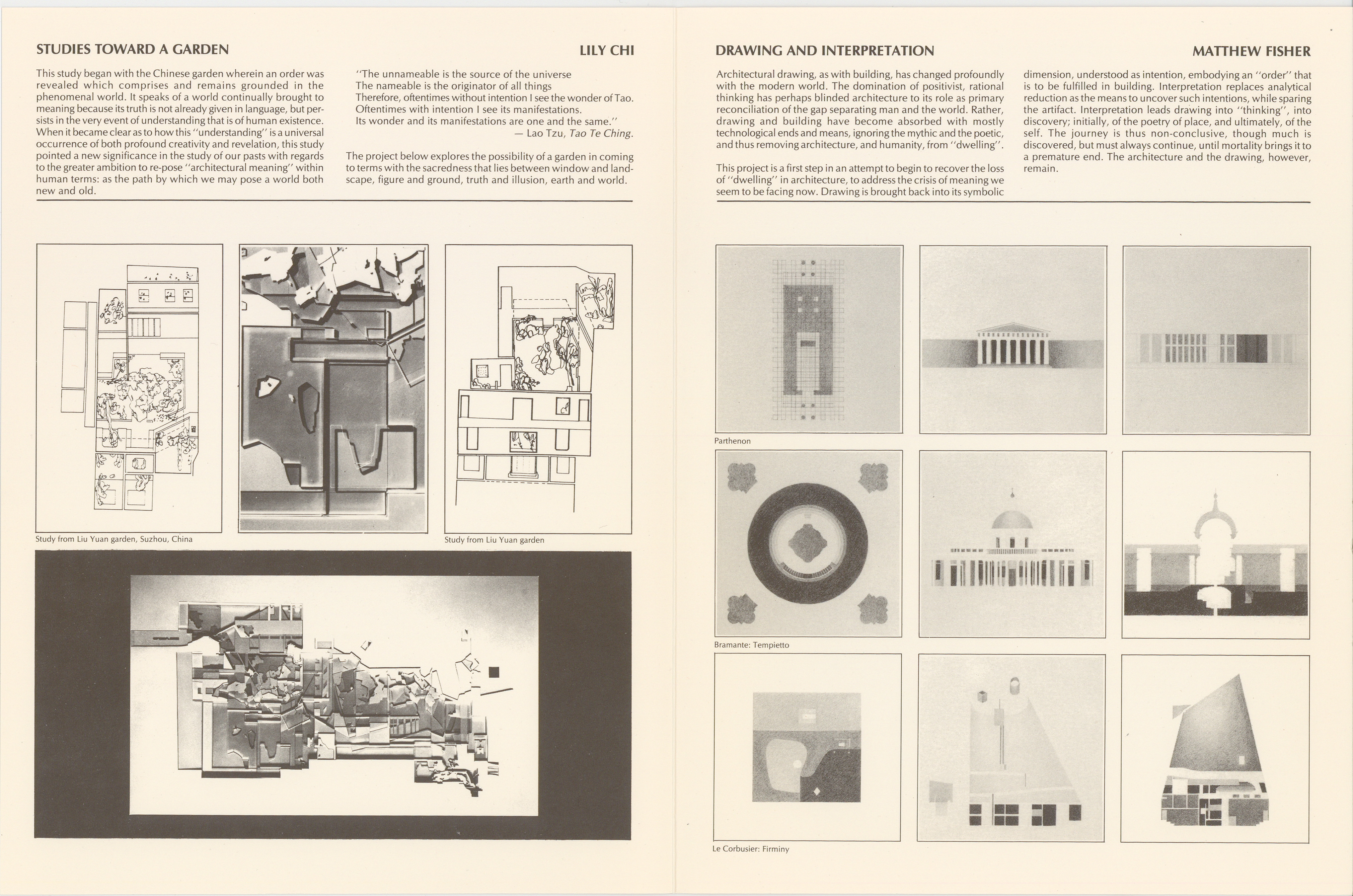The original “Folio” was presented, as its name implies, as a compilation of unbound, folded booklets. Each folio, housed in the elegant box-set captured aspects of the school’s design and research output including Studio work at all levels, Faculty projects, drawings from history and theory courses, Directed Studies Abroad (DSA), Visiting Critics Studios, and Design and Research Theses.