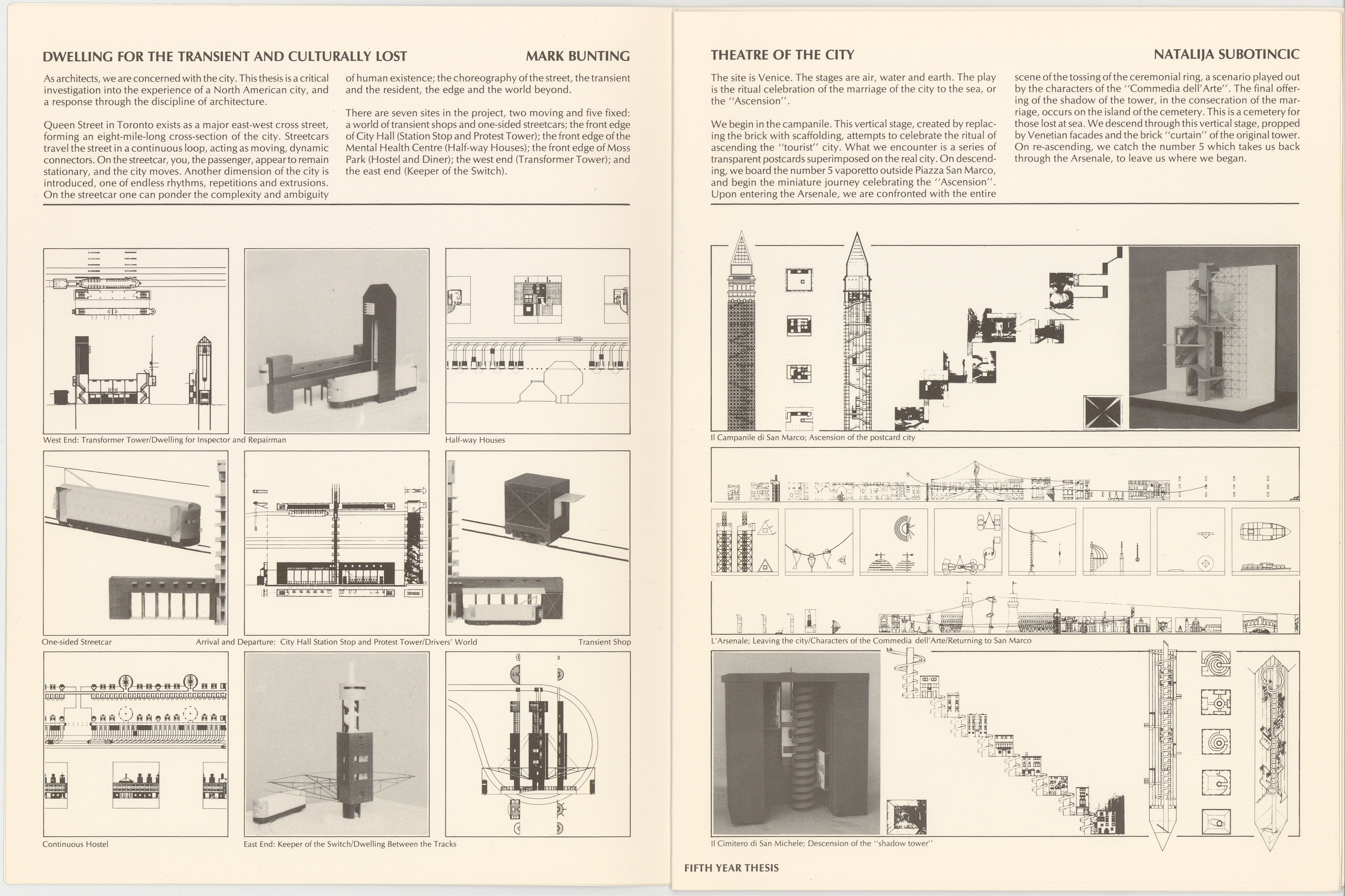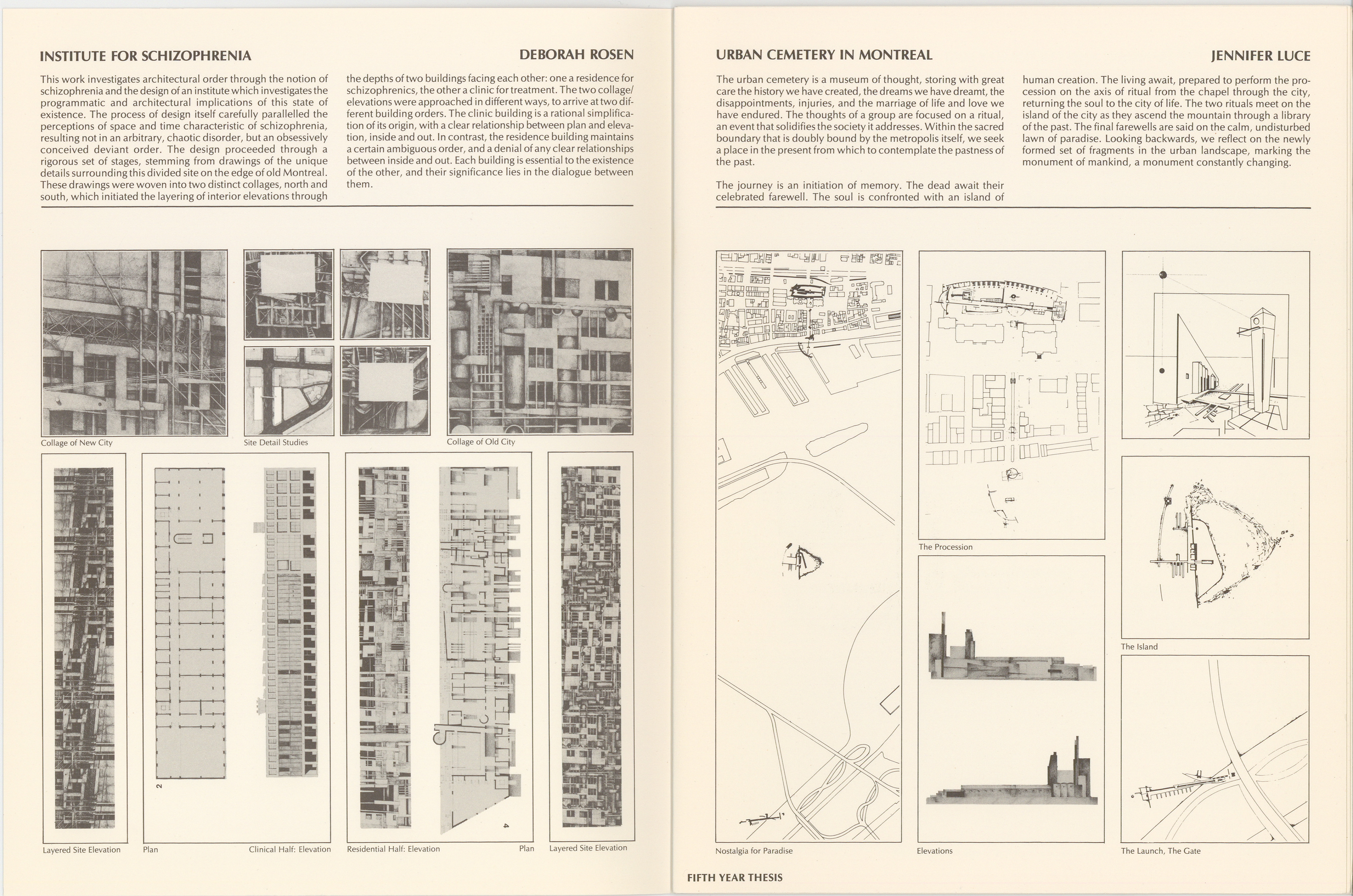 The final Folio was produced at the threshold of major changes in the Architecture program as it shifted from the 5-year B.Arch to the 4 + 2 (BAS + M.Arch) structure. Inside, one finds the final year Projects, Research and Design Theses from the Graduating Class of 2000.